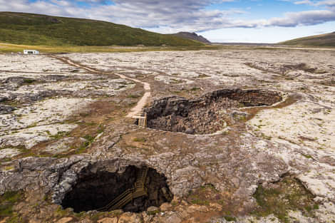 Take a guided walk into the mighty Víðgelmir lava tube with the aid of our all-new access walkway, and state of the art feature lighting system. This is a trip that the whole family can enjoy.