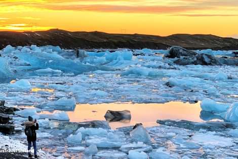 Jökulsárlón (commonly called the Glacier Lagoon), is an interesting body of water. It connects the nearby Vatnajökull glacier with the North Atlantic Ocean. This area became a popular destination, due to the ice breaking away from the glacier and drifting out to the ocean creating a constantly changing piece of art.