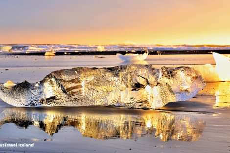The Diamond Beach is a strip of black basalt sand located next to Glacier Lagoon. The name comes from sparkling icebergs and pieces of ice that have washed on the sand from the glacier lagoon. The contrast of the crystal ice and black sand is breathtaking and attracted photographers and nature lovers all year around.