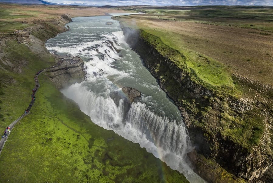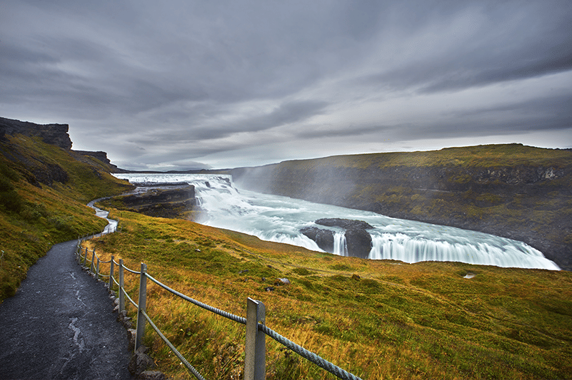 Gullfoss, or the golden falls, is a huge waterfall that drops a staggering 32 meters over two stages. It is fed from the white river which originates from Iceland’s 2nd biggest glacier. More than just a pretty site though Gullfoss also has an amazing history that involves foreign investors trying to harness its power and one young girl's amazing efforts to preserve the nature.