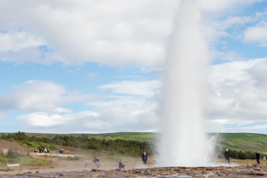 The great Geysir is an erupting hot spring. The english word Geyser actually derives from the name Geysir as this was the first geyser to be mentioned in print in Europe. Sadly the great Geysir no longer erupts of its own power but thankfully there is a geyser called strokkur very close by that goes off fairly frequently.