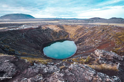 Kerid is an extremely colourful crater-lake formed in a volcanic eruption some 6500 years ago when former volcanic cone collapsed within it's own magma chamber. The crater is decorated with bright red volcanic rock and mesmerising green blue lake at the bottom. Hiking paths take you around the crater's rim for a full view of the phenomenon and surrounding landscape. There are also paths leading you down into the craters bottom for a nice stroll around the lake. The crater has been a great source of inspiration for many artists and number of concerts have been held within the craters arms.