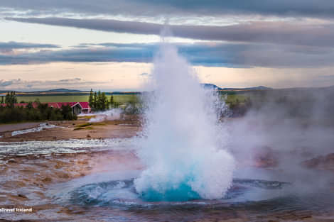 Following on from your trip to one geothermal marvel we then take you to another, the Geysir geothermal area. The area is named after the “Great Geysir” a large geyser in the area that interestingly is one of the first of its kind to be mentioned in texts. As a result the Great Geysir is actually the origin of the English word Geyser. Due to its age, the old Geysir no longer erupts of its own volition but his younger cousin, Strokkur, has stolen the show and erupts naturally every 5 to 10 minuets. A big visitors centre is at Geysir where offering many lunch options and great souvenirs.