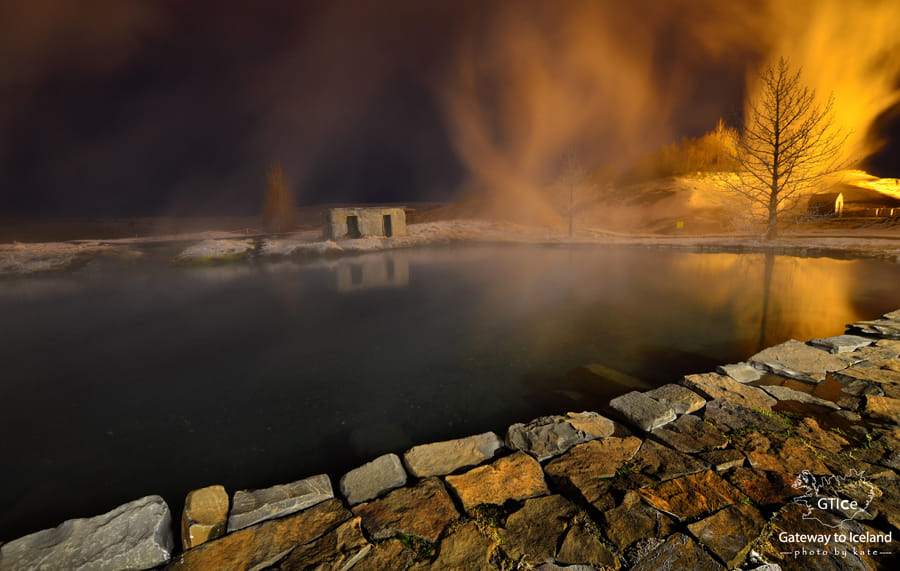 We pick you up mid-morning, between 10:00 – 10:30 AM and take you to see all the beautiful sights on the Golden Circle tour after the morning crowds have already come and gone. To top it off we will visit a natural hot spring pool where you can relax in the 38-40°C water, the Viking way, before heading back to Reykjavik. On this tour we visit the three major sights on the Golden Circle; Þingvellir, site of the World’s first Parliament that met each year outdoors, beginning in 930 AD continuing until 1798. From there we drive to one of Europe’s largest waterfalls, Iceland’s pride, the beautiful Gullfoss and on to the geothermal fields of Haukadalur where you will be able to stand up close to the erupting geyser, Strokkur. The last stop is the hot spring nature bath which the locals named the Secret Lagoon because it has up until now only been known to few. A Truly enjoyable tour combining two of the best things Iceland has to offer, great scenery and a warm relaxing nature bath (there is a full facility with changing rooms, lockers and showers; we also provide towels). Price is 13.500 ISK per person If you do not want to take a dip in the hot spring/pool you can just relax for an hour or stroll the surrounding area in which case you would just pay the regular Golden Circle tour price: 10.500 ISK per person.