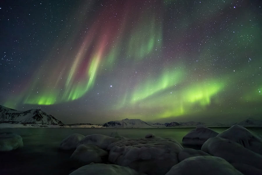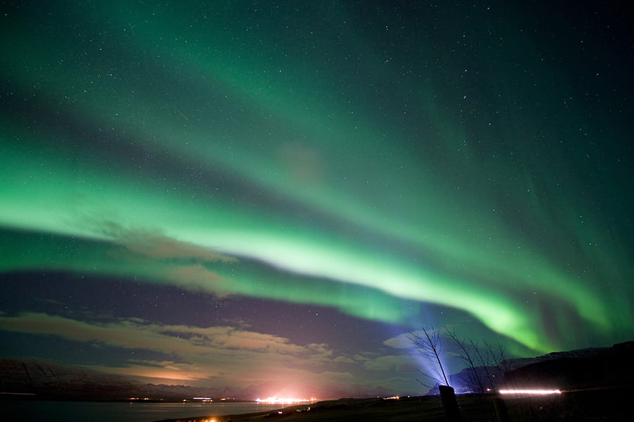 The Aurora Borealis, or the Northern Lights, are a natural phenomena typically seen on a dark but clear skied night. Green, purple, pink and white lights dance on the horizon frequently changing their shape and colour. It is perhaps nature's most fascinating displays of artistry!