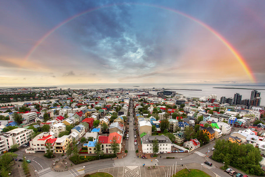Starting from the Tourist Information store on Laugavegur 5, our tour starts with a trip up the bell tower for an incredible view over the city and its colorful rooftops, the Faxaflói bay with its many islands and the surrounding mountains and volcanoes.